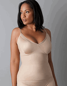 Camisoles or Shaping Tanks - They are used for upper body shaping and support. Camisoles will firm and flatten your stomach area. They also give lift to your breasts and will smooth out upper body rolls and bulges. They are also a great option when it comes to layering.